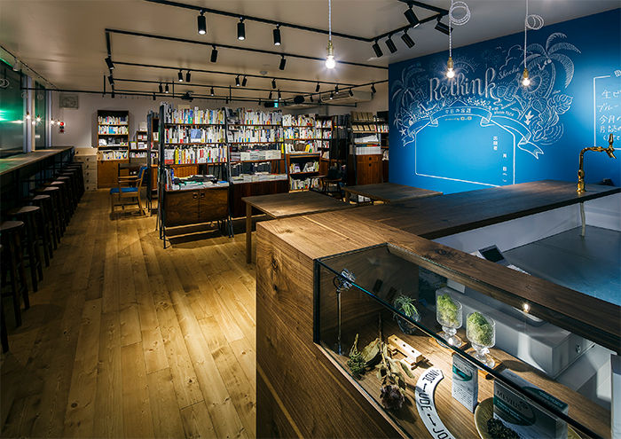 Rethink Booksは、2016年6月から2017年5月まで福岡・天神に期間限定でオープンした「本とビールと焼酎と」をテーマにした書店です。下北沢「本屋B&B」と同様に、NUMABOOKSと博報堂ケトルが共同でプロデュースしました。